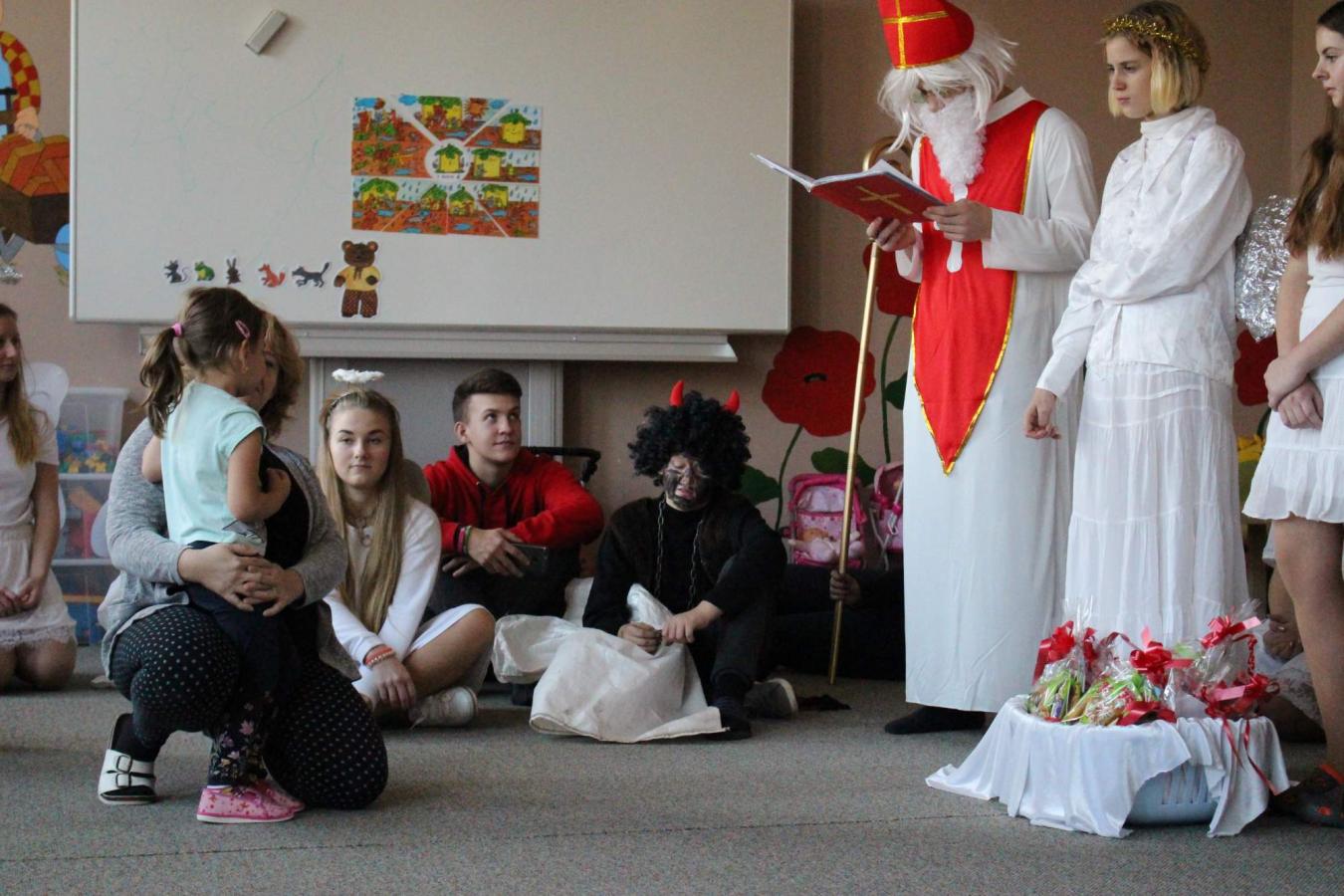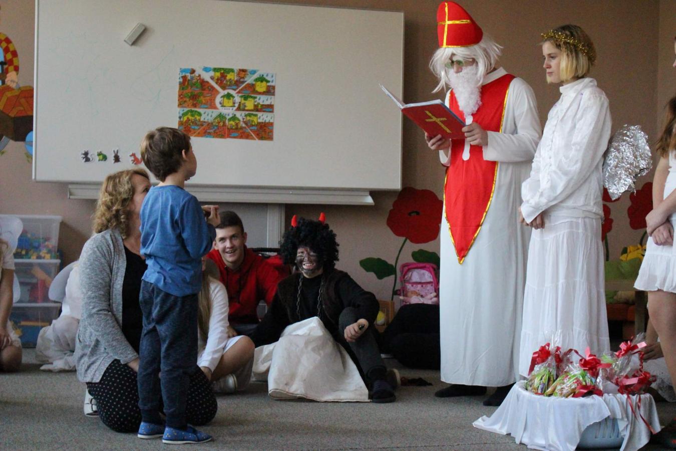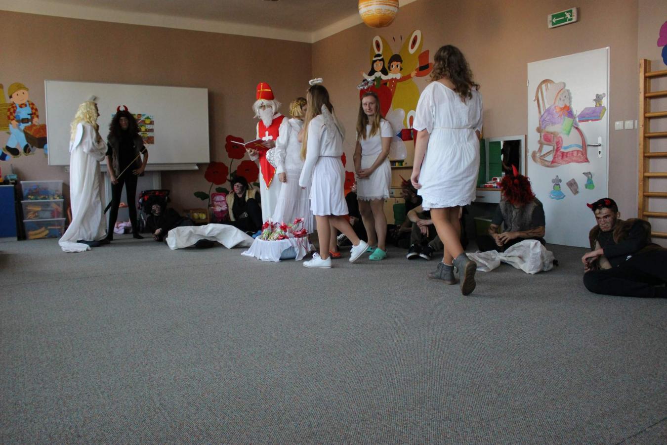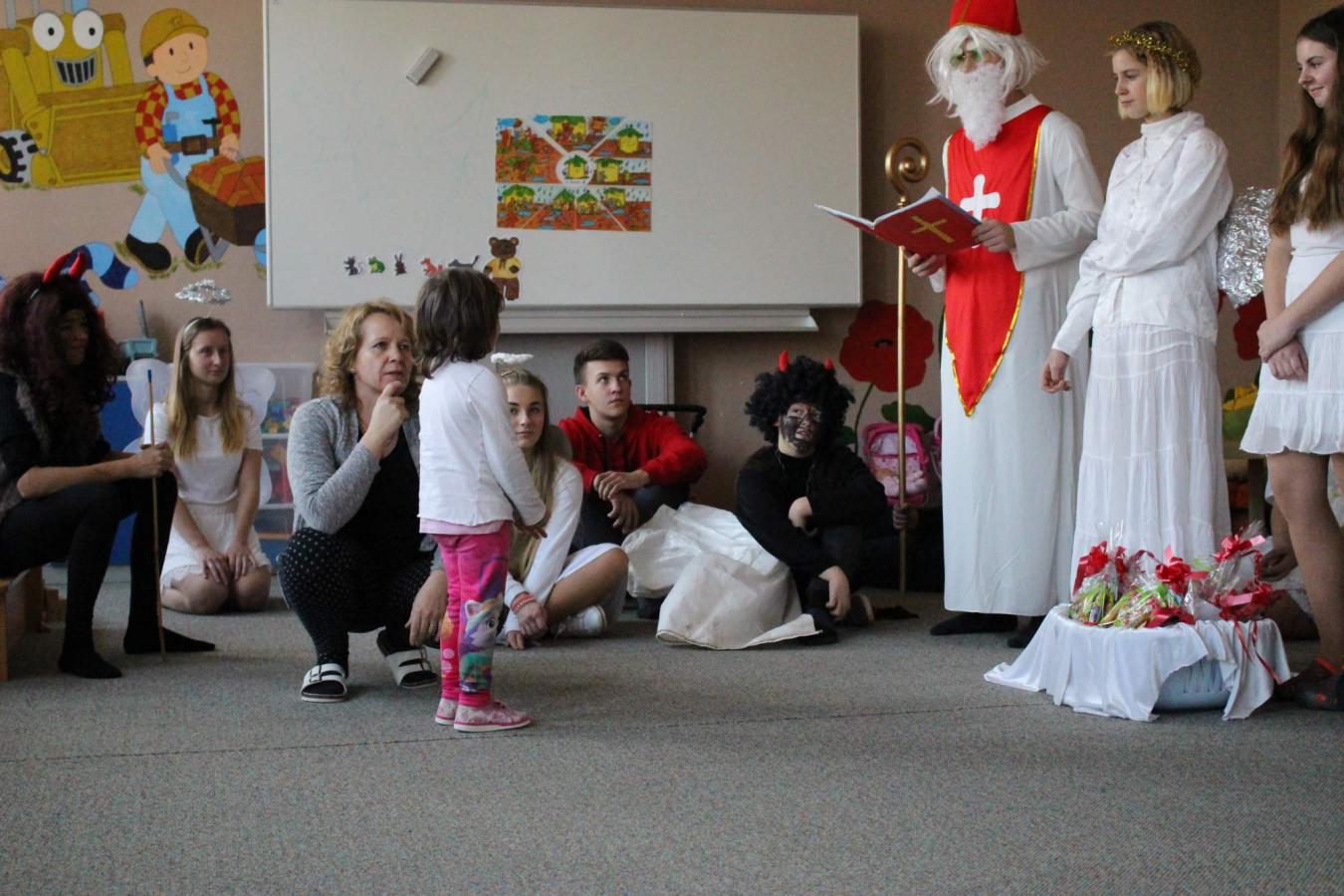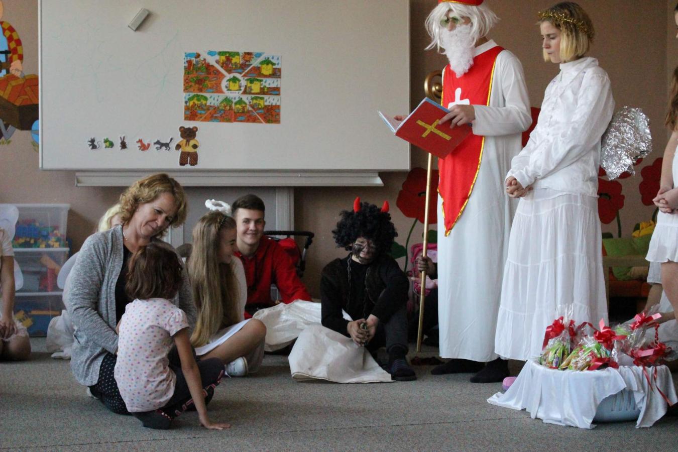 Dne 5. 12. 2019 navštívil naši školu opět po roce svatý Mikuláš s anděly a čerty. Čerti si s dětmi zahráli na pekelnou školku. Děti předváděly blekotání, šklebení, dupání. Poté si postupně se všemi dětmi popovídal Mikuláš. Všichni zazpívali písničku nebo zarecitovali básničku. Andělíčci rozdali hodným dětem dárečky a zároveň bránili děti, které čerti očuchávali. Všichni slíbili, že budou hodní a budou pomáhat. Nakonec byly děti pochváleny a rozloučily se s Mikulášem, čerty a anděly.