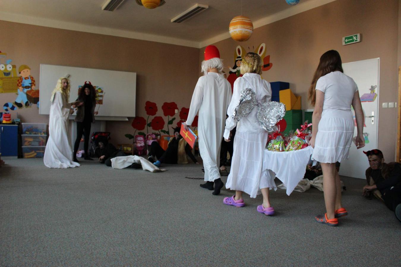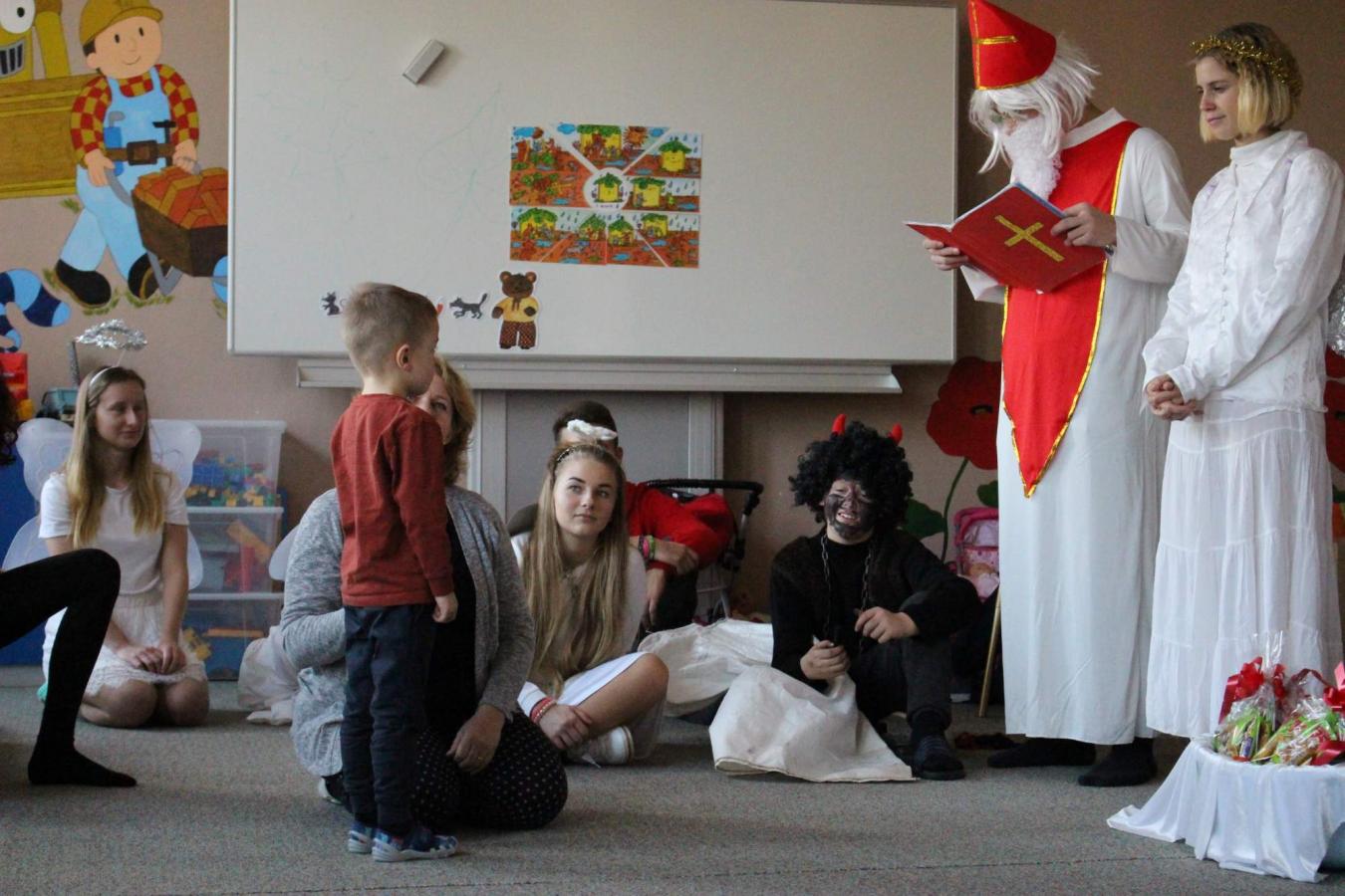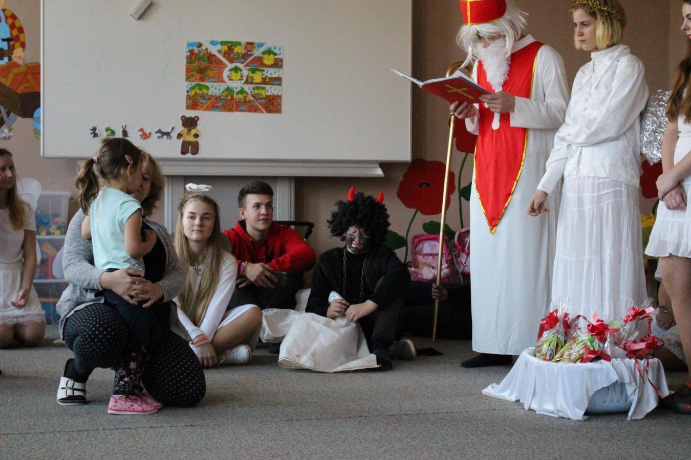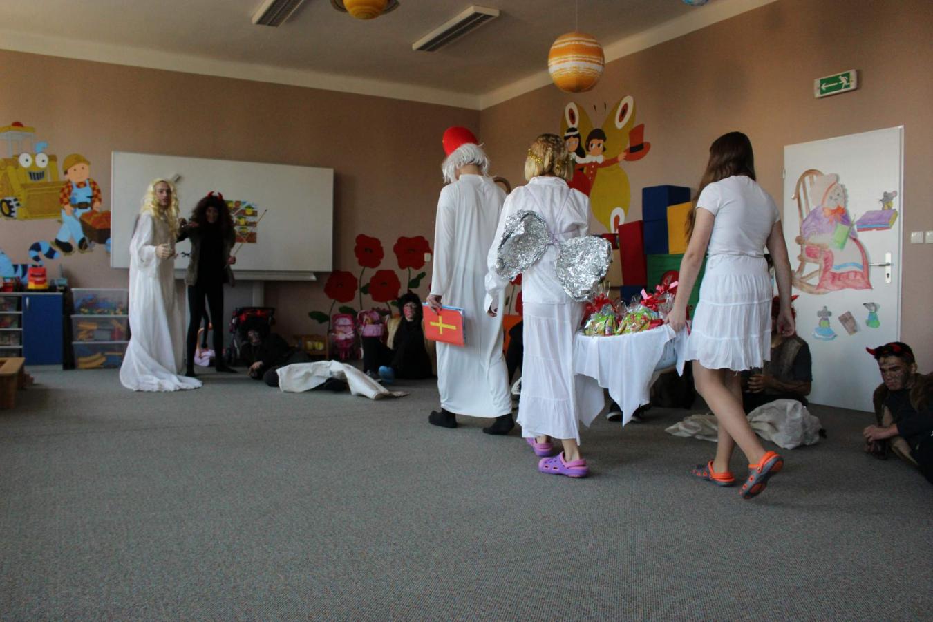 Dne 5. 12. 2019 navštívil naši školu opět po roce svatý Mikuláš s anděly a čerty. Čerti si s dětmi zahráli na pekelnou školku. Děti předváděly blekotání, šklebení, dupání. Poté si postupně se všemi dětmi popovídal Mikuláš. Všichni zazpívali písničku nebo zarecitovali básničku. Andělíčci rozdali hodným dětem dárečky a zároveň bránili děti, které čerti očuchávali. Všichni slíbili, že budou hodní a budou pomáhat. Nakonec byly děti pochváleny a rozloučily se s Mikulášem, čerty a anděly.