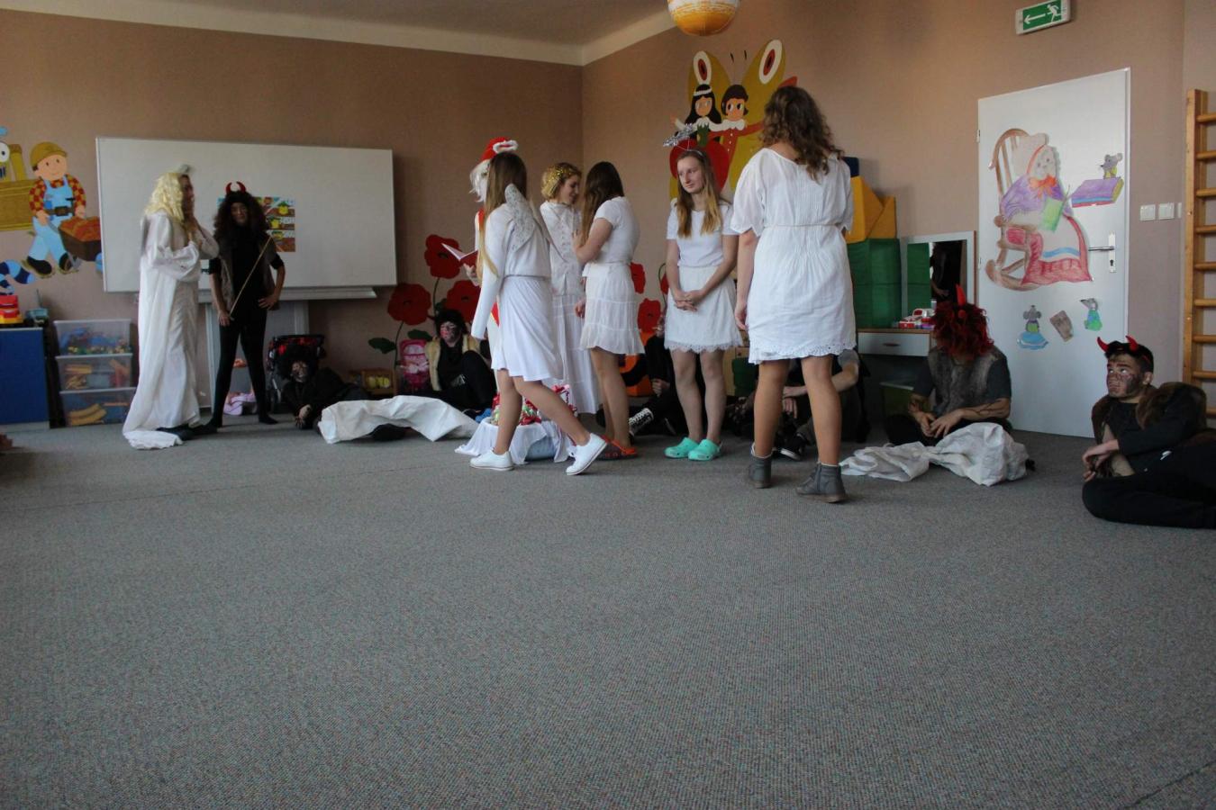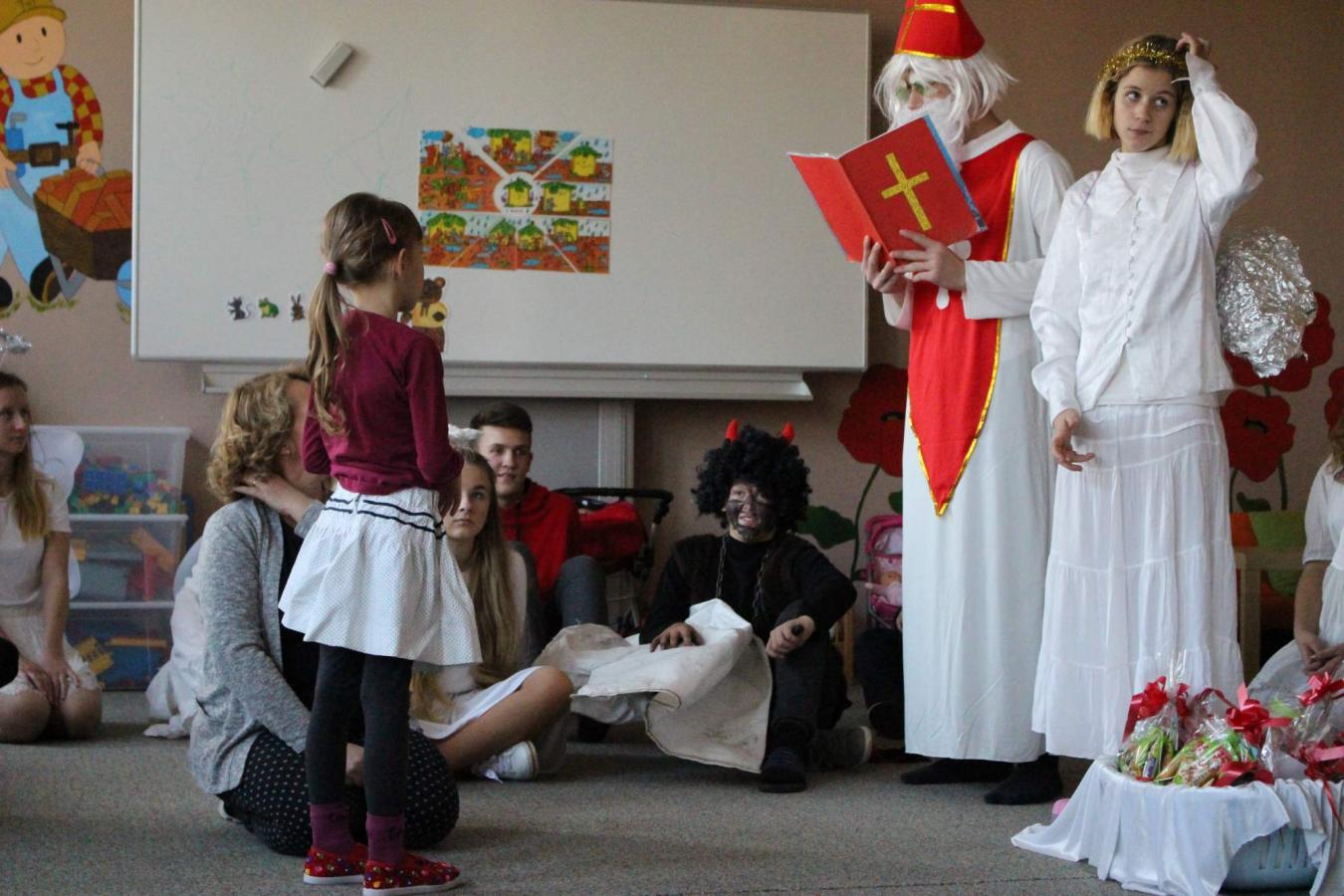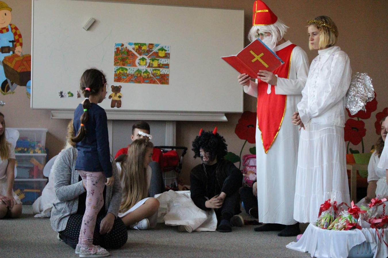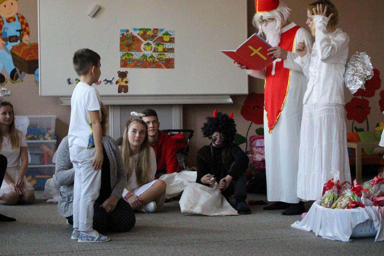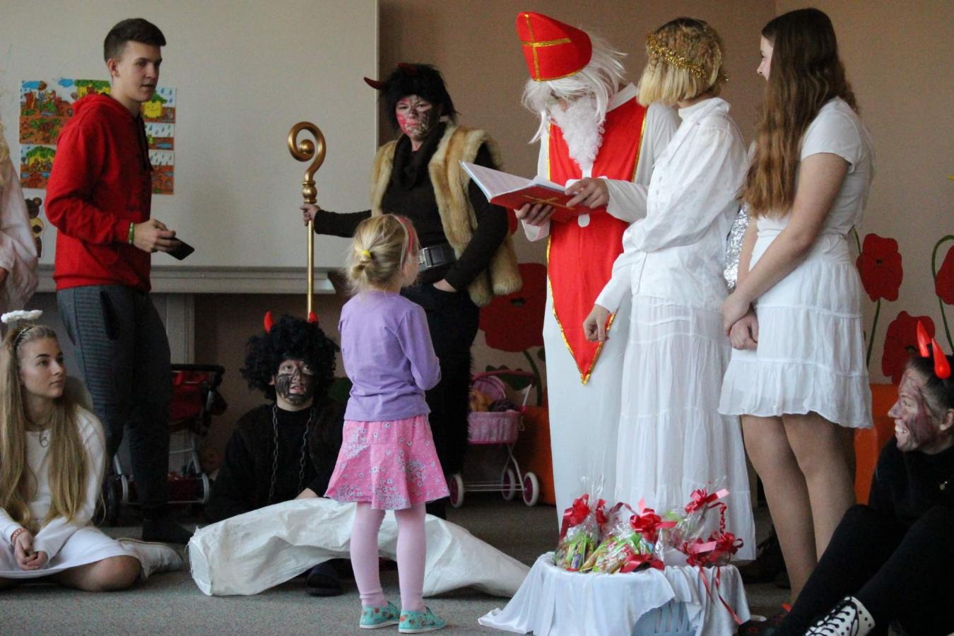 Dne 5. 12. 2019 navštívil naši školu opět po roce svatý Mikuláš s anděly a čerty. Čerti si s dětmi zahráli na pekelnou školku. Děti předváděly blekotání, šklebení, dupání. Poté si postupně se všemi dětmi popovídal Mikuláš. Všichni zazpívali písničku nebo zarecitovali básničku. Andělíčci rozdali hodným dětem dárečky a zároveň bránili děti, které čerti očuchávali. Všichni slíbili, že budou hodní a budou pomáhat. Nakonec byly děti pochváleny a rozloučily se s Mikulášem, čerty a anděly.