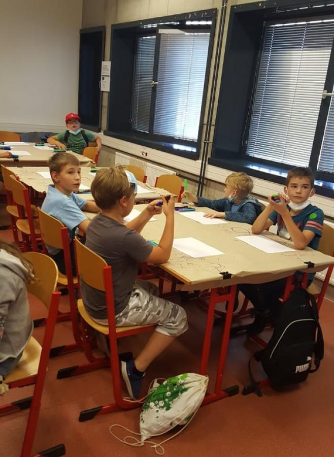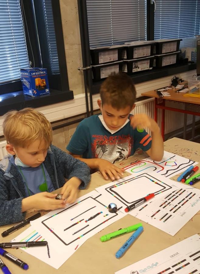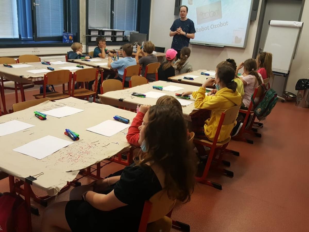 Žáky třetí, čtvrté a páté třídy si převzal pan Jan a taktéž se přesunuli do učebny, kde děti hravou formou získaly znalosti k vytvoření funkčního programu pro sledování trasy a reálného využití robota. Program robot Ozobot dětem přiblížil základy vizuálního programování. Pomohl jim pochopit princip fungování barvocitlivých senzorů: černého, červeného, modrého a zeleného. Seznámil je také s možnostmi rozhodování a volbou chování robota. Ozoboti jsou malí roboti, kteří jezdí po barevných čárách. Po prezentaci si i tato skupinka prošla expozici „Malého světa techniky U6“ s pracovními listy a vyzkoušela si různé dopravní prostředky.