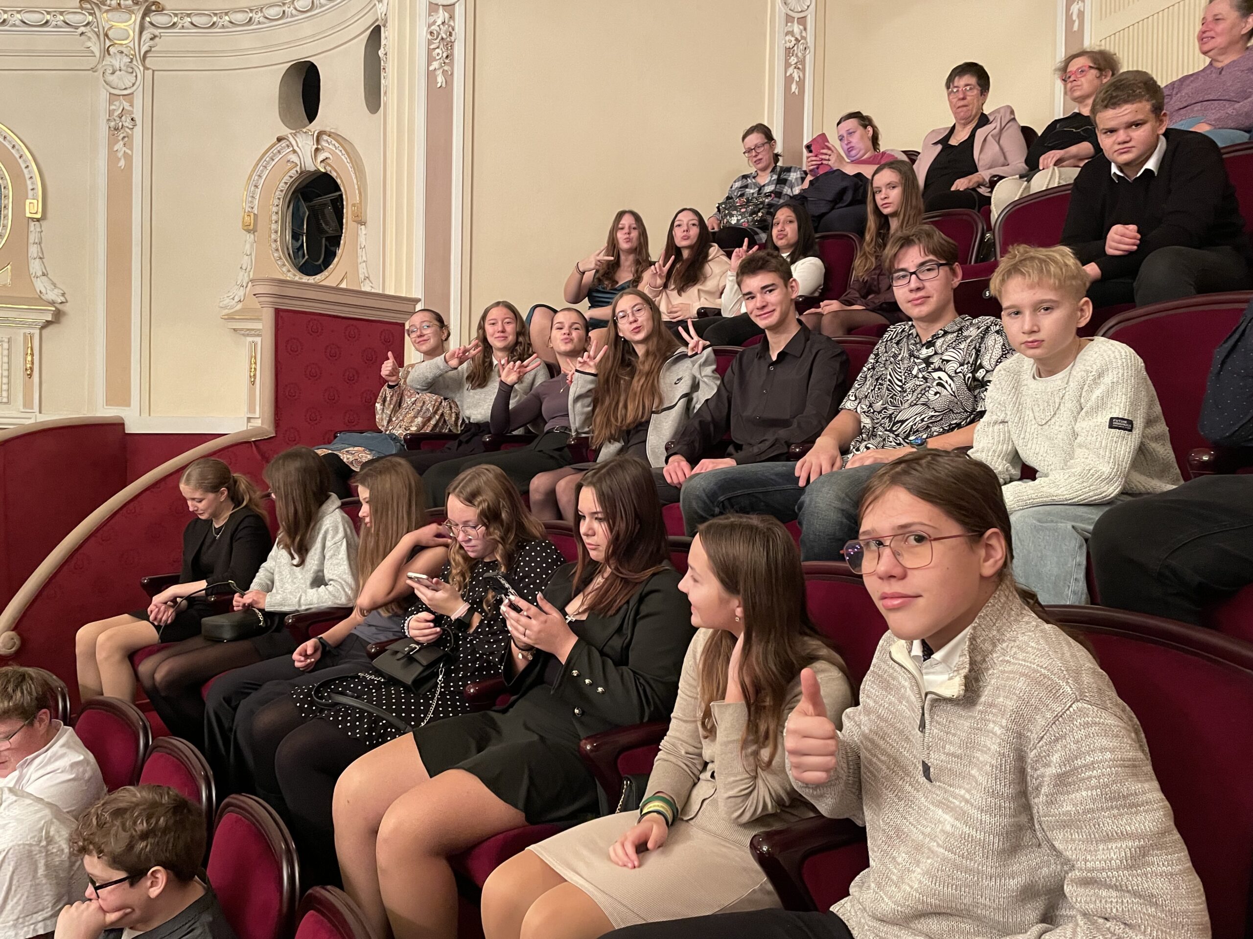 V úterý 25. listopadu 2025 navštívil celý vyšší stupeň naší školy Slezské divadlo v Opavě. Návštěva Slezského divadla v Opavě přináší vždy jedinečný kulturní zážitek a muzikál Divotvorný hrnec není výjimkou. Tato legendární česká muzikálová klasika, inspirovaná americkým dílem Finian’s Rainbow, nás okouzlila svou pohádkovou atmosférou, laskavým humorem i nadčasovým poselstvím. Opavští divadelníci připravili inscenaci, která v sobě spojuje tradiční muzikálový šarm s moderním divadelním zpracováním. Diváky vtahuje do světa, kde se prolíná realita s kouzly, a kde zlatý hrnec dokáže splnit přání jen tomu, kdo je skutečně lidský a upřímný. Silnou stránkou představení jsou energické pěvecké výkony, promyšlená choreografie a hudební aranže, které ctí původní melodie, ale působí svěže a živě.Kulisy i kostýmy vytvářejí pestré a příjemně stylizované prostředí, díky kterému příběh získává osobité kouzlo. Atmosféra hlediště Slezského divadla pak celý zážitek umocňuje – historická budova nabízí intimní, a přitom reprezentativní prostor, který dodává představení tu správnou divadelní noblesu.Divotvorný hrnec v Opavě je představení, které potěší milovníky klasických muzikálů, rodiny i diváky hledající nenáročnou, ale poctivě udělanou zábavu. Domů si odnesete nejen melodie, které vám budou ještě dlouho znít v uších, ale i příjemný pocit, že dobrota a humor mají na jevišti stále své pevné místo.