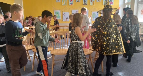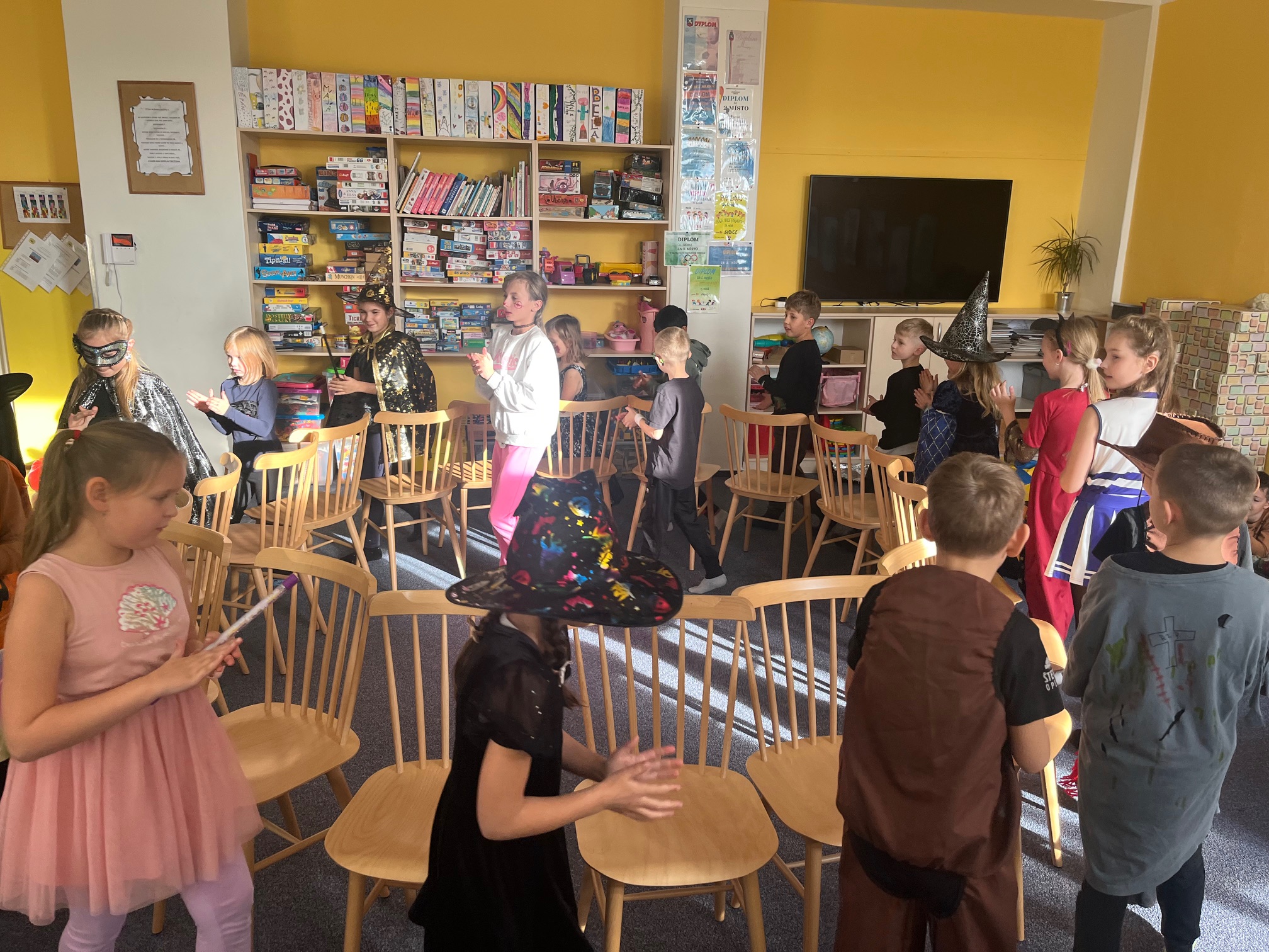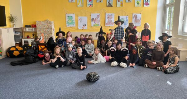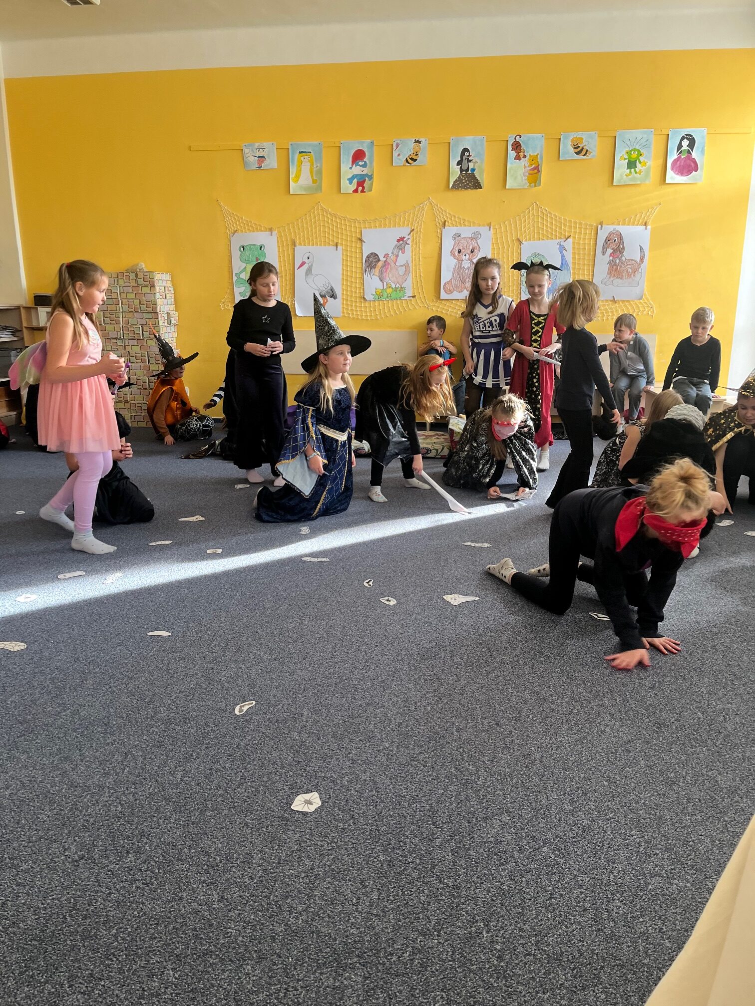 Druhé listopadové páteční odpoledne se v družině neslo ve strašidelném duchu. Konala se oblíbená Halloween party, na kterou děti dorazily v krásných a nápaditých strašidelných maskách. Nechyběli duchové, čarodějnice, kostlivci ani další tajuplné bytosti – všechny masky byly originální a děti si jejich přípravu opravdu užily. Během odpoledne děti soutěžily, tančily a bavily se u různých her, které pro ně byly připravené. Velký úspěch měla i naše tradiční židličkovaná, u které nikdy nechybí napětí, smích a pořádná dávka energie. Atmosféra byla veselá, hravá a plná nadšení.Celé odpoledne se vydařilo na jedničku a děti si odnesly spoustu zážitků i dobrou náladu 😊.