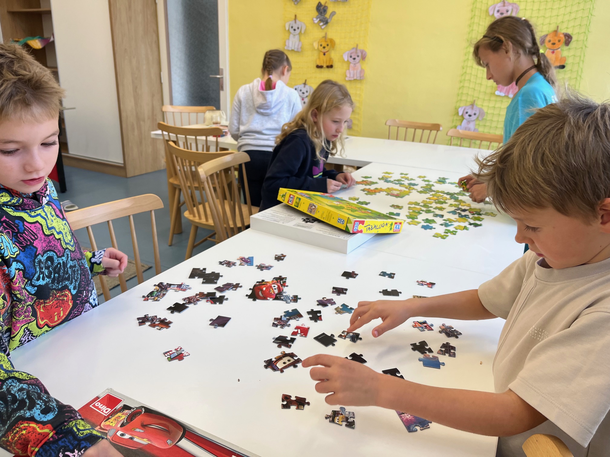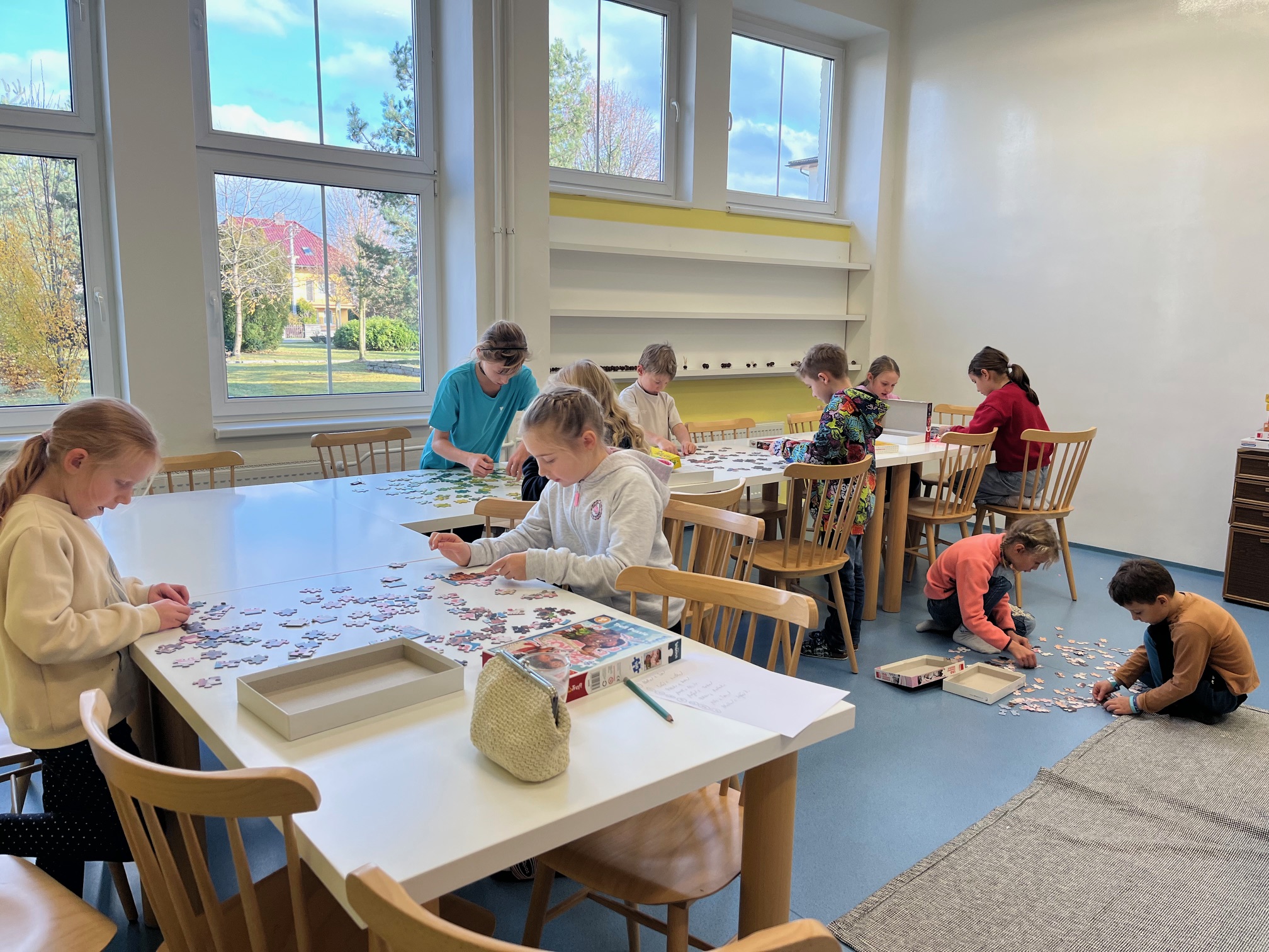 Do letošní Puzzliády se zapojilo celkem 16 žáků z prvního i druhého oddělení, kteří předvedli úžasné nadšení, vytrvalost i týmového ducha. Soutěžící se pustili do skládání puzzlí s obrovským odhodláním a mnozí z nich bojovali opravdu do posledního kousku. Atmosféra byla plná napětí, radosti a děti se navzájem povzbuzovaly. Nakonec jsme poznali vítěze obou oddělení: