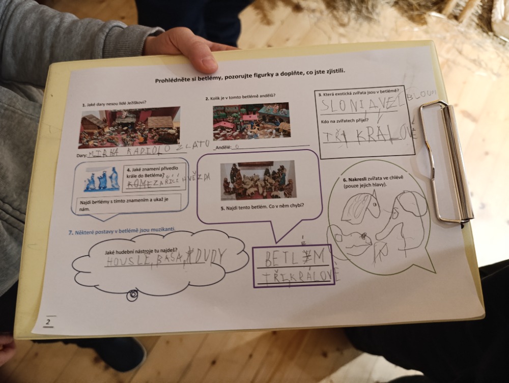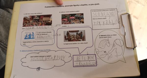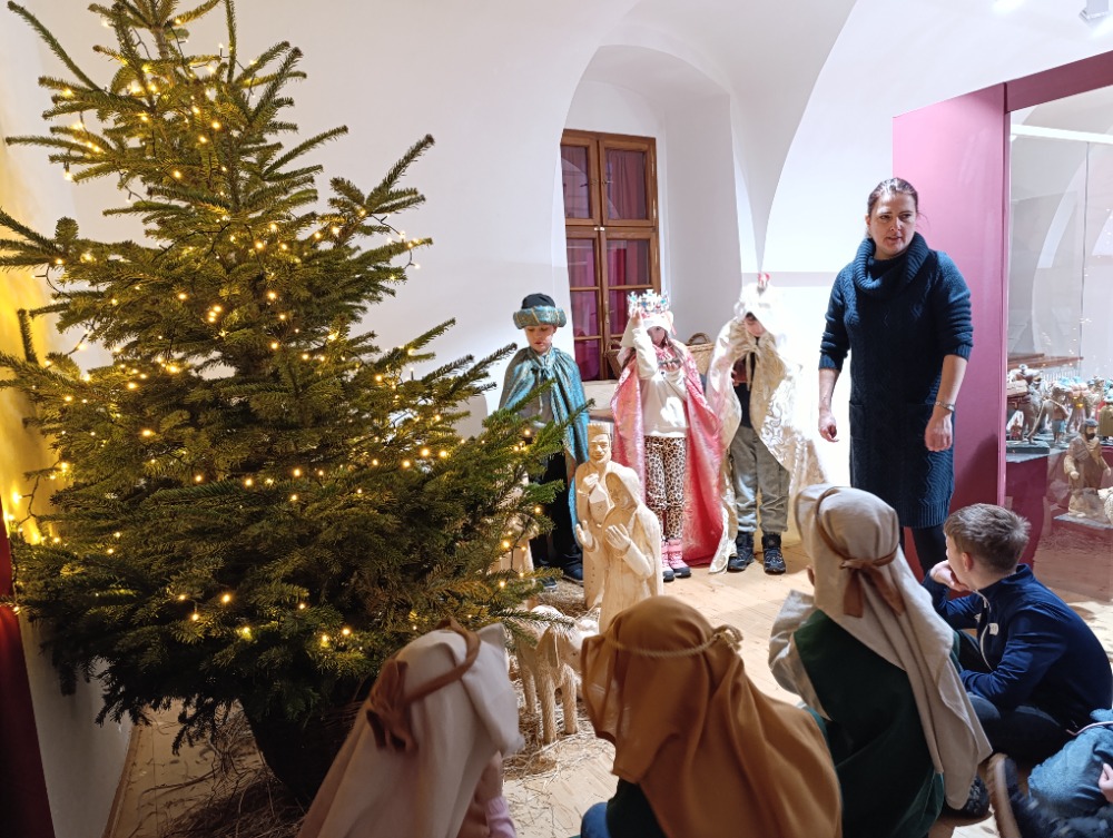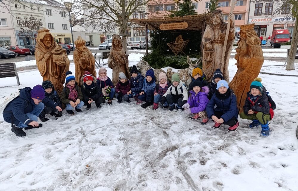 Ve středu 14. ledna 2026 jsme vyrazili do Muzea Hlučínska v Hlučíně na edukační program Cesta do Betléma.  Nejdříve byly děti oblečeny do kostýmů pastýřů a králů. Poté jsme se vydali ke stromečku s krásným dřevěným betlémem a byli jsme seznámeni s dary králů. Povídali jsme si vánoční příběh, který byl doplněn hvězdnou oblohou. Nebyl to jen poslech, žáci pak vyplňovali pracovní listy a úkolů nebylo málo. V muzeu jsou vystaveny krásné betlémy z různých materiálů, bylo se na co dívat. Na závěr malé vyrábění Tří králů.  Po svačině jsme vyrazili do knihovny, kde si pro nás paní knihovnice nachystala zajímavý příběh.