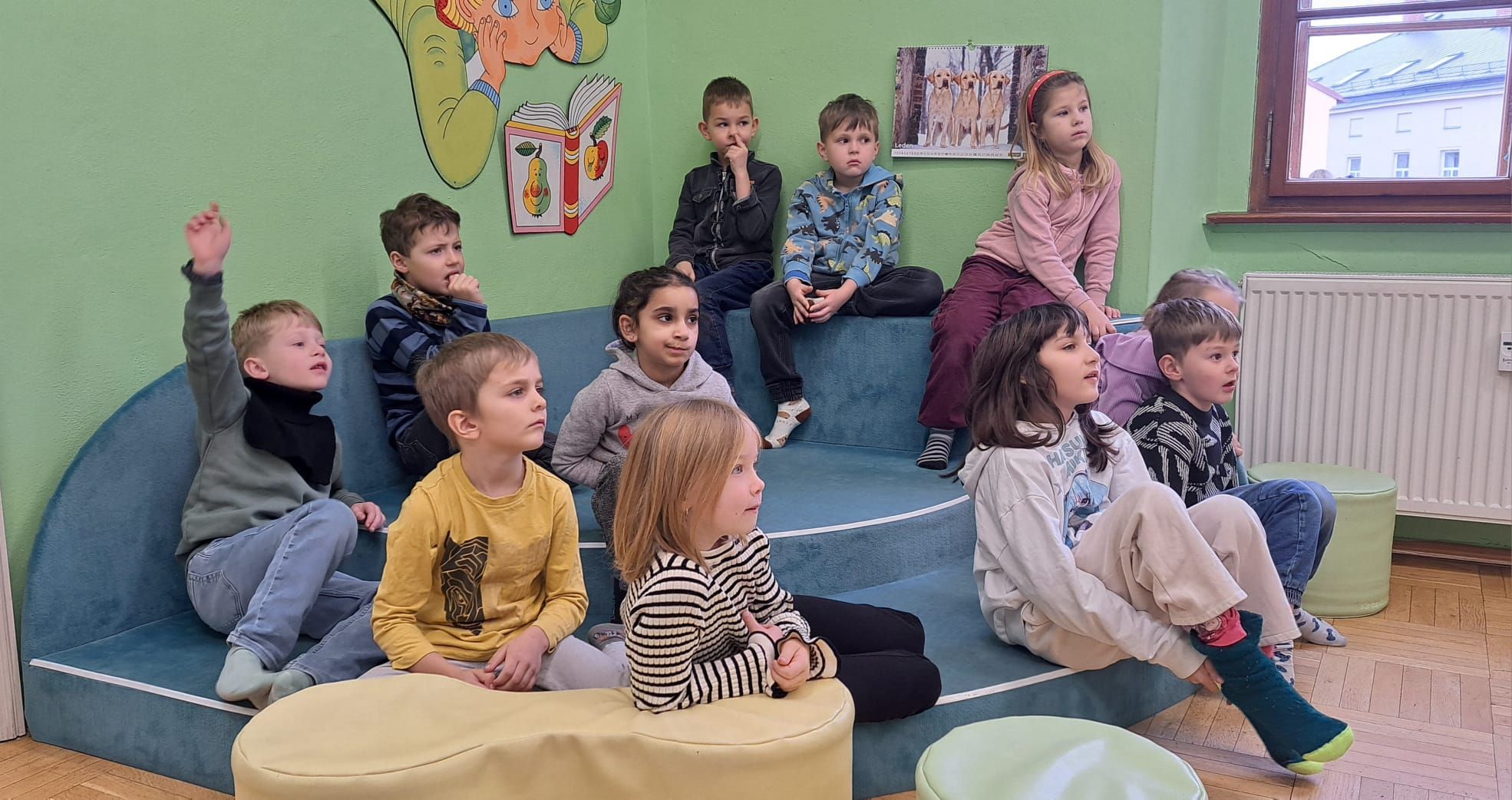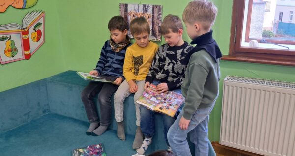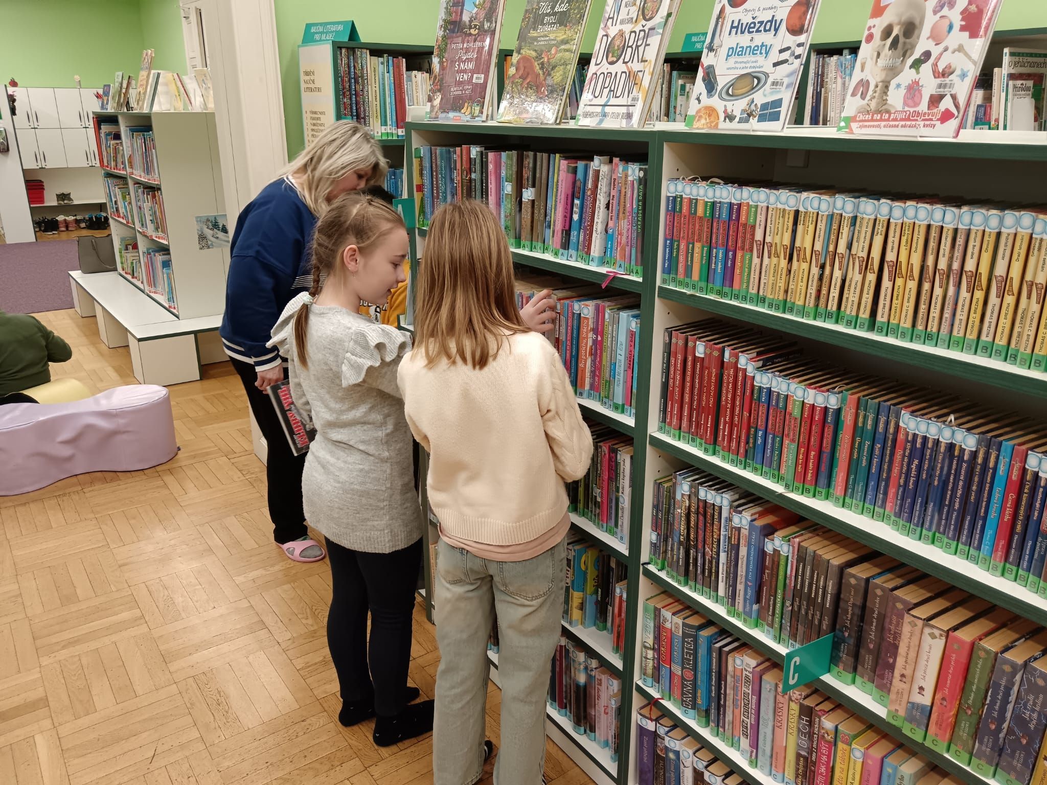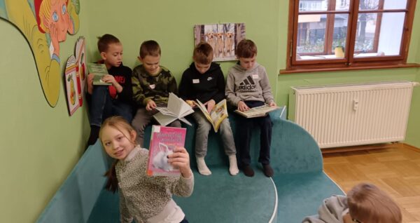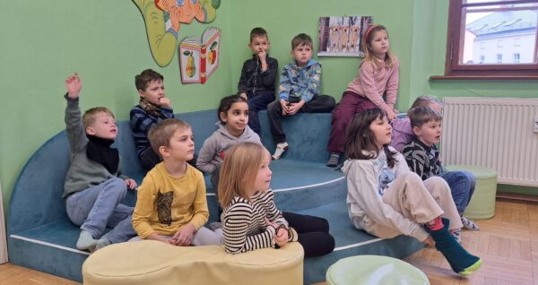 Během dopoledne jsme zavítali i do místní knihovny, kde na děti čekala příjemná návštěva plná knih a zajímavého povídání o tom, jak knihovna funguje. 📚 Paní knihovnice dětem přečetla humornou pohádku 😂📖, která je velmi pobavila, a poté si všichni mohli prohlížet a číst knihy dle vlastního výběru. 👀📚